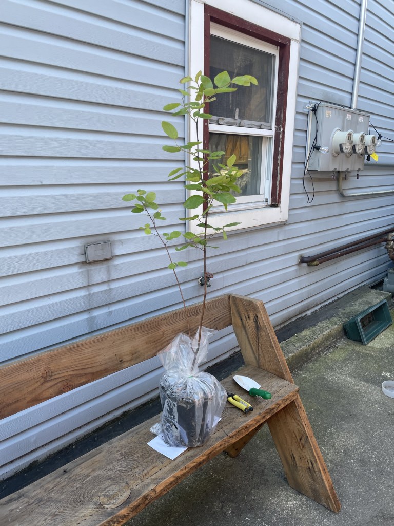 Being an Openlands TreeKeeper® has expanded my community, hope for tree advocacy, and support system. My friend Wendy shared with me a free tree giveaway Arbor Day Foundation program for homeowners. If you rent, you will likely need to ask permission to request and plant a tree. I was so thrilled that this program existed as I am still trying to improve the tree canopy in my unshaded front yard. A couple years ago, an estimated 78 year old tree had fallen due to an unknown disease. It had provided shade for us and had left an empty space in our energy depleting sod landscape. We’ve slowly introduced several native plants, shrubs, and saplings. Many birds, butterflies, bees, and bugs visit us. I was so excited that I could order a gallon Amelanchier canadensis sapling for free. I requested my tree thinking this surely would not arrive this year, but I received it a couple weeks after and it is much taller and healthier than I thought it would be!