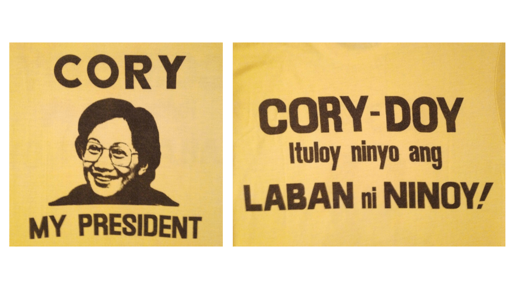 In Western newspapers, most people preferred to refer to President Cory Aquino rather than her full name, Maria Corazon “Cory” Sumulong Cojuangco-Aquino. “Cory” loved yellow because it symbolized power and hope for the people. Her loyal supporters would hold up an “L” sign with their right hands. I used to think the “L” meant “Love”, but it meant “Laban” (which my parents defined as “Fight for Love”). When I was 12 or 13, I was invited to an event at the Philippine Embassy in Tokyo, Japan. (My parents were not in politics, but they were involved with events there and were often invited to ceremonies as guests.) My mom’s first cousin was appointed Ambassador Romy Arguelles. To me, he was Tito Romy. I have a photo somewhere of me in a yellow Philippine “terno” giving President Corey Aquino a beautiful bouquet of flowers.